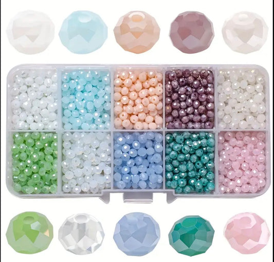 4mm faceted glass beads - approx 600pcs - 10 colours